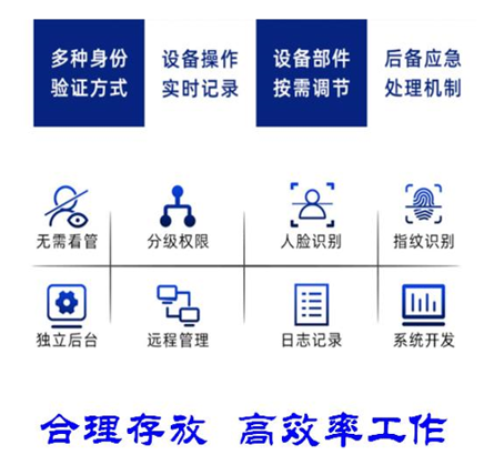 5.技術應用:采用超高頻RFID技術,與后臺數據庫對接,實現對綁定RFID電子標簽的物品智能存取、自動盤點和實時監控。內部集成了RFID讀寫設備、超高頻RFID天線等,支持多標簽讀取,通過網口或WiFi進行數據傳輸。 6特色功能:多種登錄方式:支持指紋、人臉識別等多種登錄方式,進行領用權限管理。 實時盤點功能:裝備柜安裝有特別設計的RFID天線,可實現對在架綁定電子標簽的物品24小時在線盤點。 盤存速率快:采用超高頻RFID技術,盤點速度快。 管理功能強大:可實現物品的查找、盤點、人員權限、在線檢測等使用過程的信息化管理。 使用方便:員工根據權限即拿即走,后臺自動更新裝備在位情況,物品在庫情況直觀,使用方便。