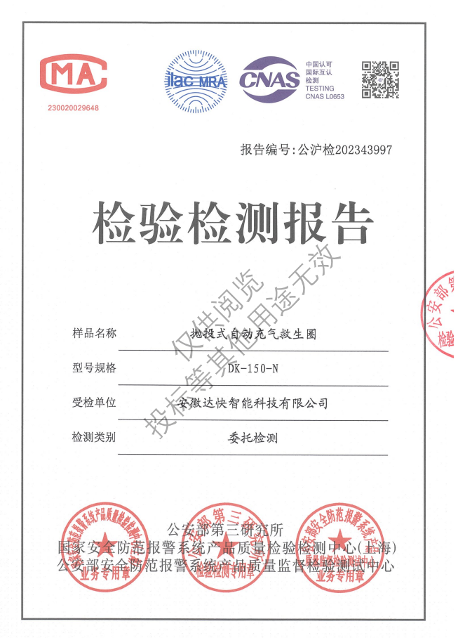 關鍵詞: 自動充氣救生圈、拋投式救生圈、便攜式救生圈